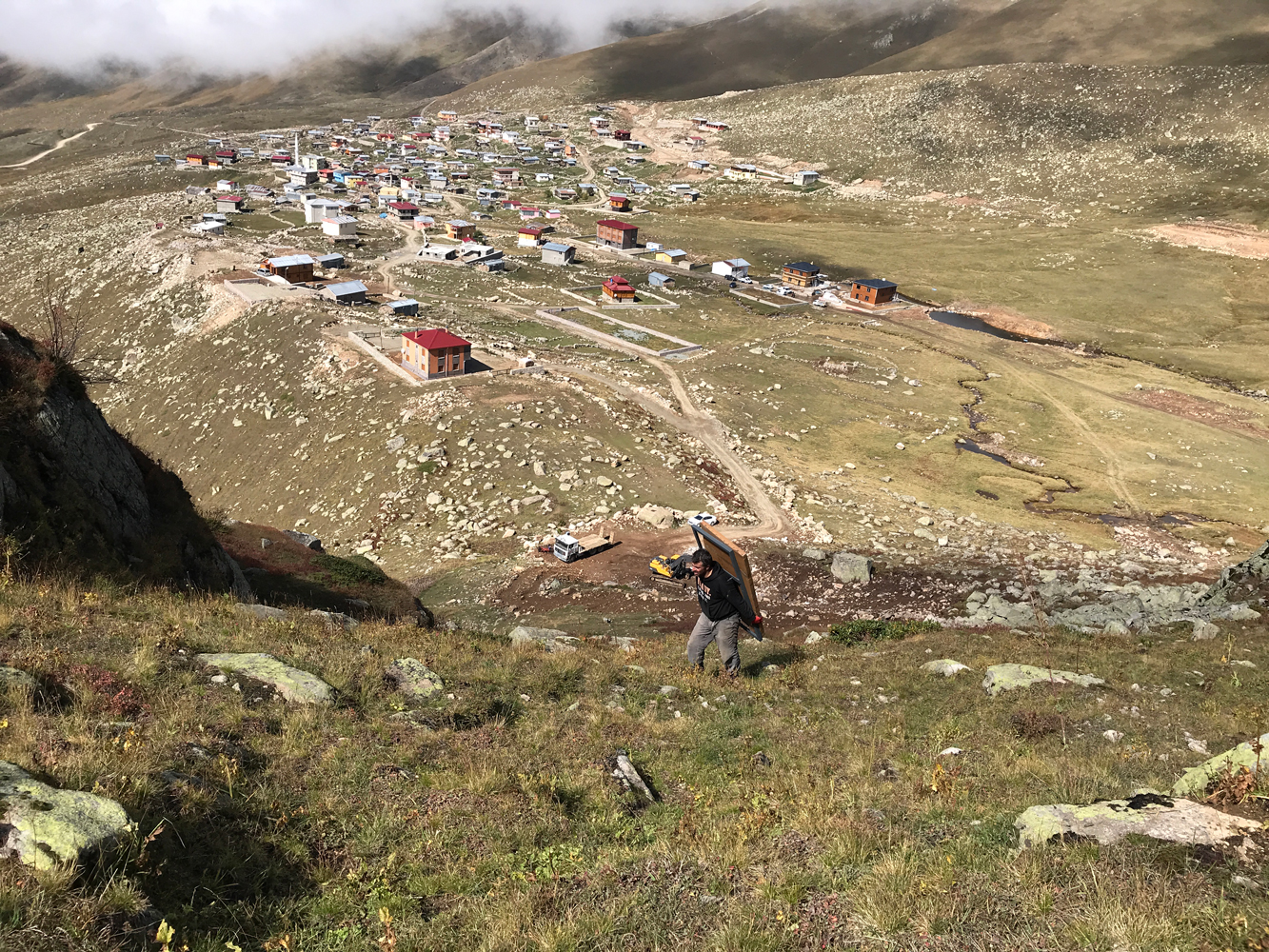 | 29-09-2019 09:00 | Plânladığımız şekilde sabah 09.00 da malzemeyi toplayıp buluşup 3 kişi olarak çıktık yaylaya. Yayla eski evde bulunan 60Kg’lık direği sırtlanıp tuttuk Şako’nun yolunu. Evden Şakonun dibine kadar olan 900 metrelik düz yolu gitmek çok kolay olsada Şako dibinden tepesine olan 500metre yatay 100 metre dikey mesafeyi çıkmak hiç kolay olmadı. Bu kısımı katetmek malzemeyi taşımak tam 5 saatimizi aldı. Malzemeden dolayı 2 yol yapmak durumunda kaldık. Antremansız olan Bülent Karaka ve Ben(Abdullah Sevilmiş) 2 yolu yapana kadar Ahmet Karaka 3 yol yapıp direk ve akü kuyuları açtı. |
